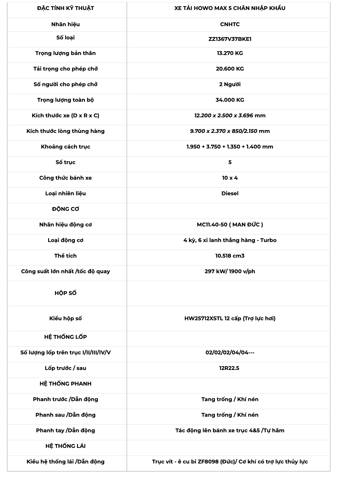 Xe tải Howo MAN 4 chân với tải trọng 17,9 tấn là một dòng xe đáng chú ý trong phân khúc xe tải nặng. Dưới đây là một số điểm nổi bật của nó so với các dòng xe cùng phân khúc:
