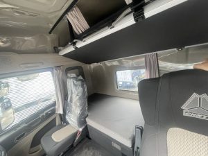 Trong xe giường của Howo math bốn chân là giường ngủ hai tầng chiều rộng của giường 850mm (8 tấc rưỡi) Giúp cho việc nghỉ ngơi thoải mái hơn, đặc ngủ Đặc biệt còn có thể ngủ hai người trên 2 tầng khi xe dừng chân nghỉ.