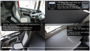 Cabin Tiện Nghi của Howo MAN 4 chân thường có cabin rộng rãi và tiện nghi, với các tính năng như hệ thống điều hòa không khí, ghế lái thoải mái và hệ thống giải trí, tạo điều kiện làm việc thoải mái cho người lái.